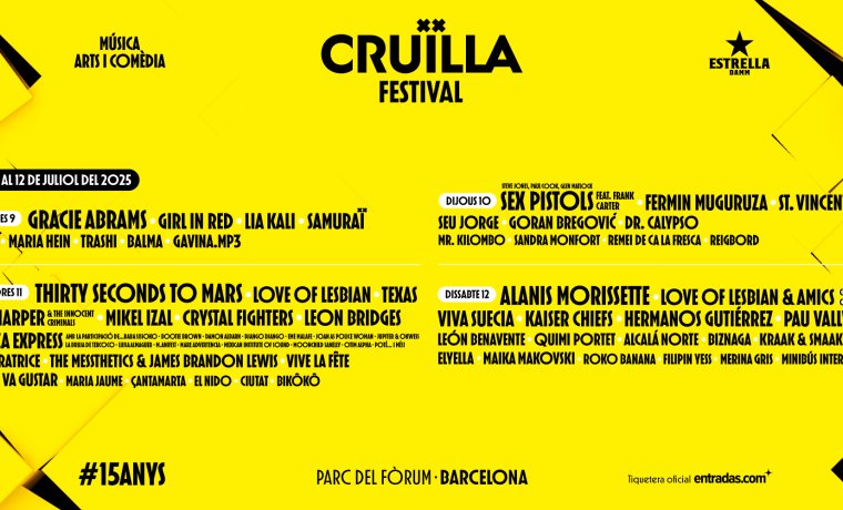 A més a més, serà una edició molt especial; el Festival Cruïlla fa 15 anys! I per celebrar-ho com toca, volem que balleu, que canteu, que rieu i que gaudiu com mai! I la prova la programació d’artistes que formaran part del cartell musical d’enguany! Descobreix tota la informació dels artistes!