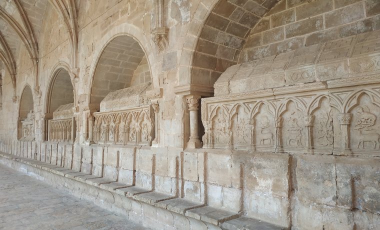 Després visitarem totes les estances que vulguem, ja que no hi viuen monjos des de 1835. Començarem pel claustre posterior amb les estances primitives i el palau reial, on també trobarem unes maquetes del monestir pensades per a persones amb discapacitat visual i per tothom que les vulgui tocar. Després, continuarem cap al claustre major (avui dia en obres, així que hi pot haver sorolls forts) i pujarem al dormitori. En acabat, tornarem al claustre per accedir a la sala capitular i acabarem a l’església amb les tombes dels reis Pere el Gran, Jaume II i la reina Blanca d’Anjou.